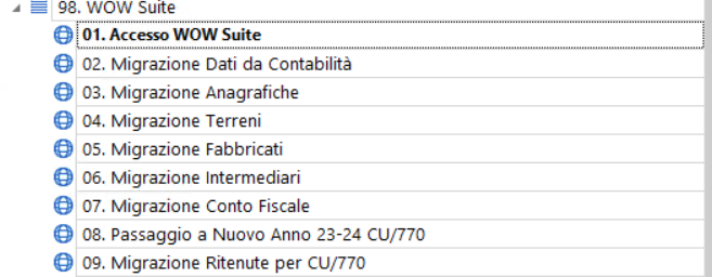 2. Dal menu di Spinoff, punto 98. Wow Suite > 01. Accesso Wow Suite ;