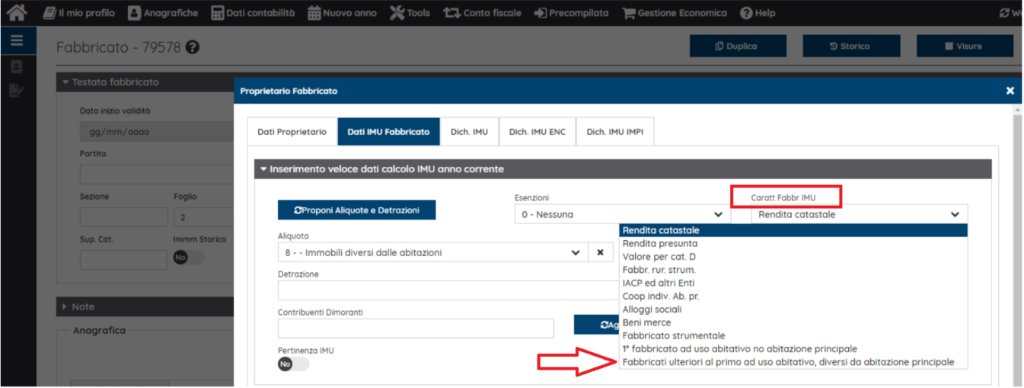 inserito una nuova opzione alla combo "Caratteristica fabbricato" che trovate all'interno del rigo proprietario del singolo fabbricato:
