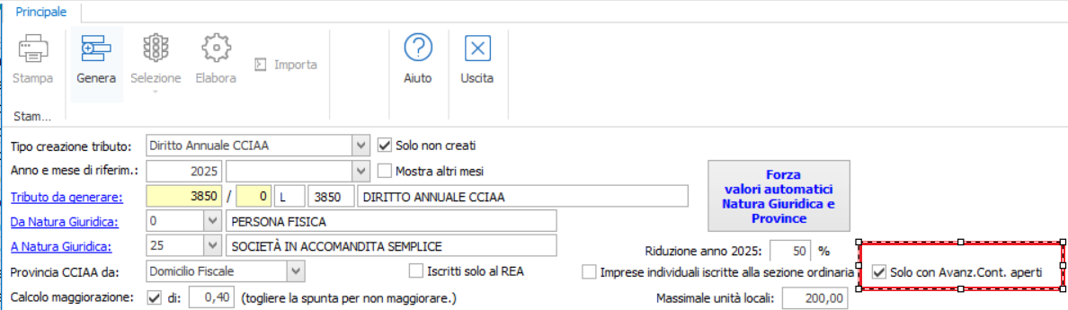 - Calcolo diritto Annuale alla camera di commercio: inserita la spunta per far visualizzare solamente le anagrafiche con anno contabile selezionato aperto in Ditta
