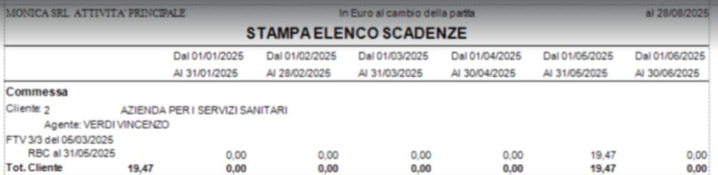 - Scadenzario: Stampa elenco scadenze, alcune volte la stampa usciva senza la descrizione del Cliente in oggetto