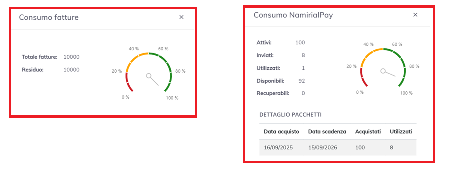 Riorganizzazione della sezione Contatori che integra Consumo Fatture e NamirialPay in un unico riquadro informativo.