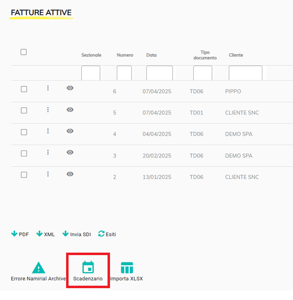 Lo Scadenzario era accessibile solo tramite pulsante nella schermata delle Fatture attive.