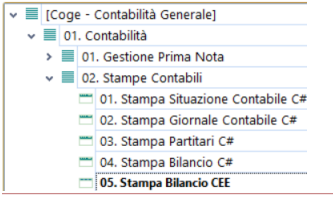 01 Contabilità → 02 Stampe Contabili → 05 Bilancio CEE