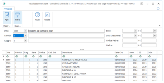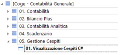 - Gestione Cespiti → 1 Visualizzazione Cespiti