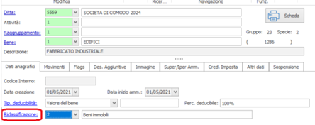 Una volta create le categorie, sarà necessario entrare nei singoli cespiti e agganciare la relativa categoria dal link “Riclassificazione”.
