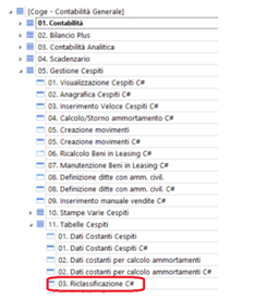05 Gestione Cespiti – 11 Tabelle Cespiti – 03 Riclassificazione