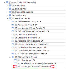 05 Cespiti – 10 Stampe Varie Cespiti – 03 Calcolo per le società di comodo