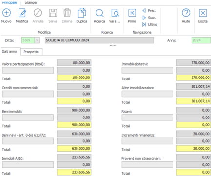 01 Contabilità → 02 Stampe Contabili → 06 Società di Comodo.