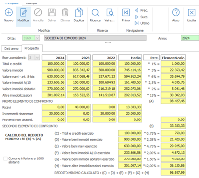 Cliccando su “03. Calcolo per società di comodo” viene mostrata la schermata seguente.