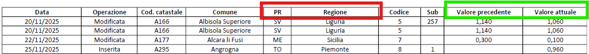 Rilasciamo le aliquote aggiornate dal 11/11/2025 al 26/11/2025, che trovate nei files (Pdf e Excel) allegati in calce alle presenti note di rilascio. Sul file abbiamo aggiunto le seguenti info: