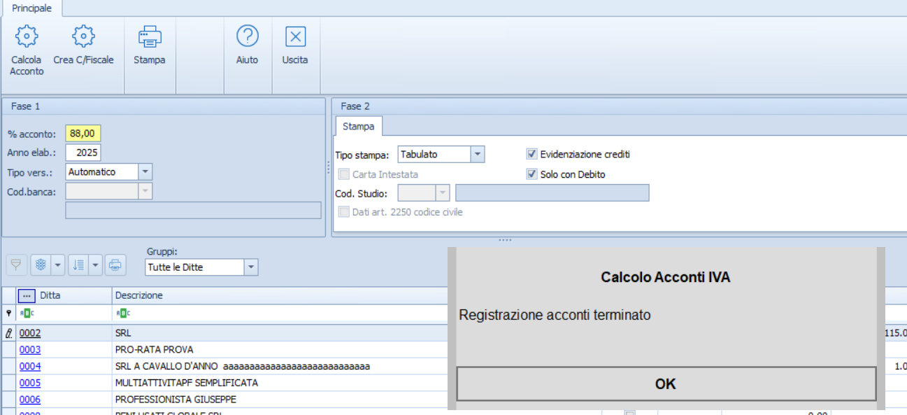 I pulsanti "calcola acconto " e crea c/fiscale" una volta premuti non davano comunicazione dell’elaborazione in corso. Ora appare il relativo messaggio