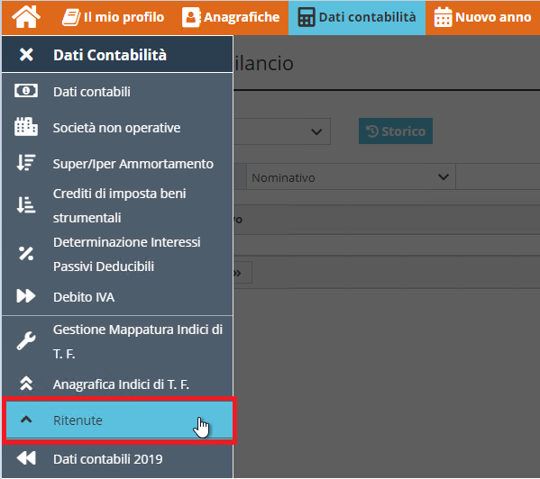 Nel menù espandibile di sinistra selezionare la voce Ritenute:
