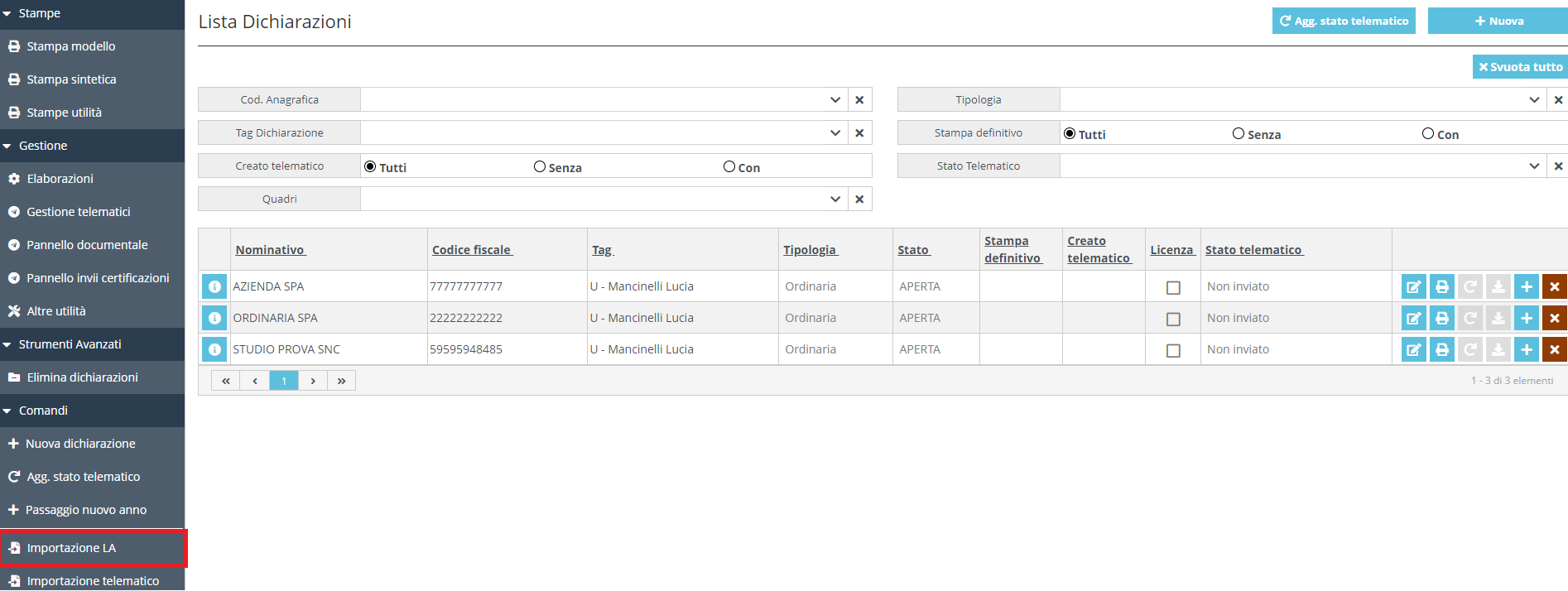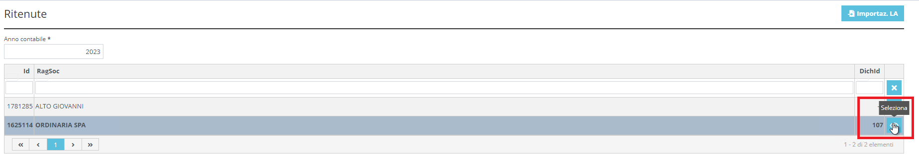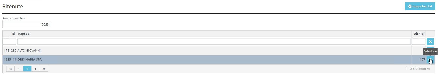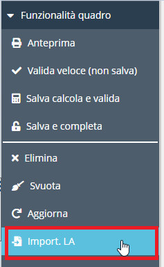 E' inoltre possibile importare le ritenute direttamente dal quadro LA del singolo dichiarativo cliccando sulla voce "Import LA":