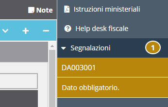 La validazione dei dati potrebbe portare a delle segnalazioni che verranno visualizzate nella sezione "Segnalazioni", sulla destra della pagina, facendo riferimento ai controlli delle specifiche tecniche.