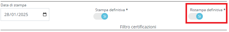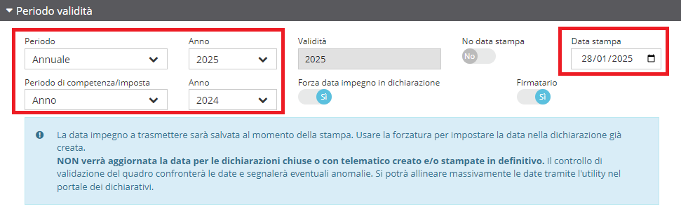 Nella sezione sottostante, proseguire inserendo il periodo di riferimento e la data stampa.