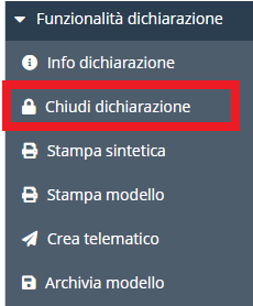 Una volta completata la chiusura dei quadri, cliccare su "Chiudi di dichiarazione" nella sezione "Funzionalità dichiarazione".