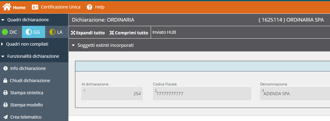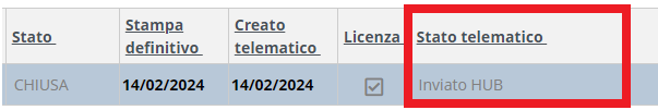 Questa procedura aggiornerà in automatico lo stato telematico (nella pagina di elenco delle dichiarazioni) da "Non inviato" ad "Inviato HUB".