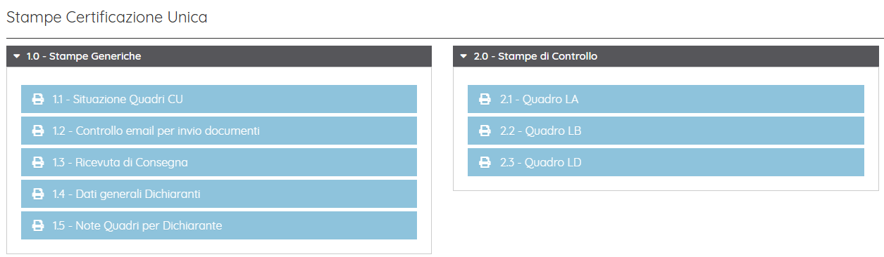 - Quadro LA: in questo caso è possibile effettuare diverse stampe di controllo relative al quadro LA.