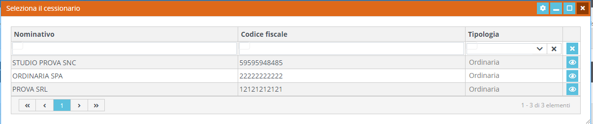 Cliccando verrà proposto l’elenco dei dichiaranti per scegliere il soggetto Cessionario.