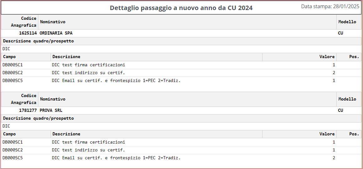 - Controllo email per invio documenti: in questo caso è possibile effettuare due stampe per verificare la presenza dell'email nel campo "Invio email doc. /Archiviazione/Firma" di ogni percipiente/dichiarante nel "Manager".