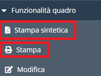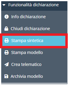 Cliccando su "Stampa" viene generato e salvato il pdf (in bozza) del quadro. Per la "Stampa sintetica", invece, cliccare sull'omonimo tasto: