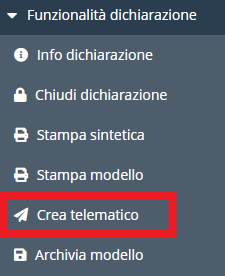 E' possibile, inoltre, creare il telematico in maniera massiva. Per fare ciò sarà necessario posizionarsi sulla pagina di elenco delle dichiarazioni.