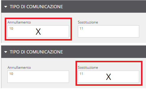 - Inserire, dunque, il protocollo e il progressivo rispettivamente nei campi "Identificativo invio da ann/sost" e "Progressivo da ann/sost".
