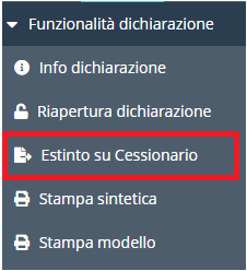 Per fra ciò dopo aver normalmente compilato e controllato le due distinte dichiarazioni , procedere alla chiusura della dichiarazione del soggetto Cedente. A questo punto comparirà una scelta “Estinto su Cessionario” nel menu funzionalità dichiarazione all’interno della dichiarazione stessa.