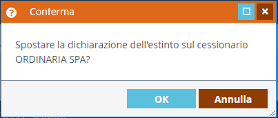 Premendo sull’occhietto viene chiesta conferma dell’operazione di passaggio dati dal Cedente al Cessionario e quindi parte l’elaborazione che integra i dati della dichiarazione del Cedente su quella del Cessionario e al termine marca il Cedente come estinto .