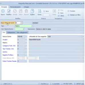 Andare nella voce di menu 1-5-3, selezionare il Piano dei Conti Standard, e cliccare sulla etichetta Num.Piano dei Conti
