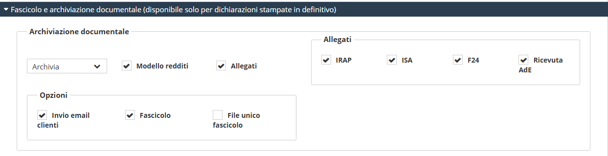Oltre al modello fiscale, è ora possibile selezionare anche gli allegati.