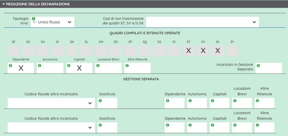NB. Dal 2025 è disponibile anche la creazione quadro ST sez. III.