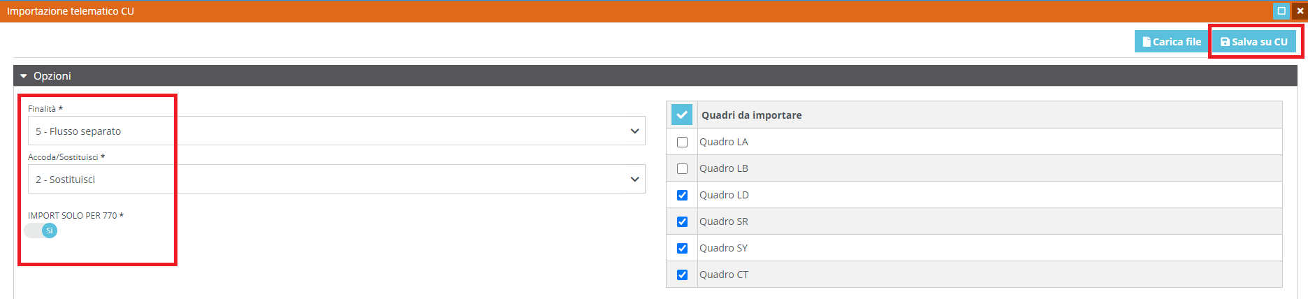 Ricordiamo che chi non ha elaborato la CU di lavoro dipendente con la WoW Suite può effettuare l'importazione della CU da file telematico scegliendo l'opzione Flusso Separato e il flag "solo per 770" in modo da avere a disposizione i dati per la quadratura senza intaccare la CU di lavoro autonomo.