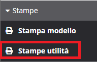 Per accedere alle stampe di utilità, dalla pagina di elenco delle dichiarazioni, cliccare sulla voce "Stampe di utilità" all'interno della sezione "Stampe".