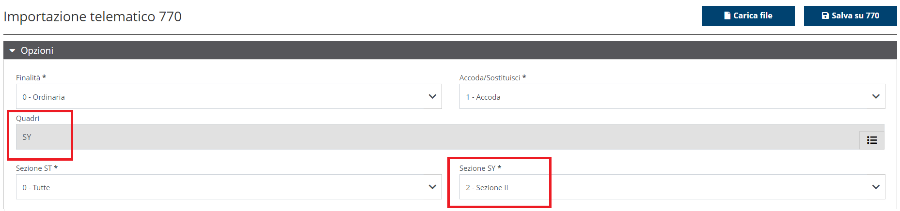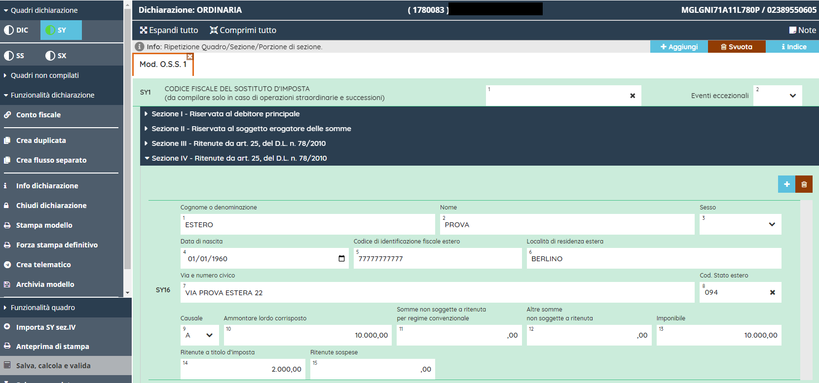Accedendo dunque al 770 il quadro SY sarà già aperto e compilato con i dati importati nella sez. IV.