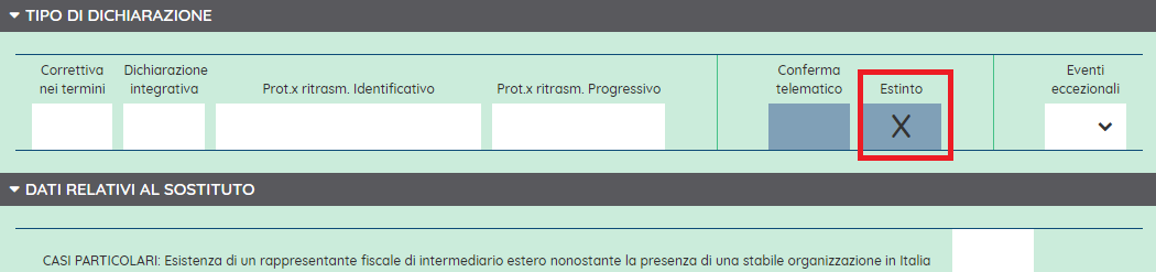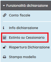 A questo punto comparirà la scelta "Estinto su cessionario" che è disponibile solo a dichiarazione chiusa.