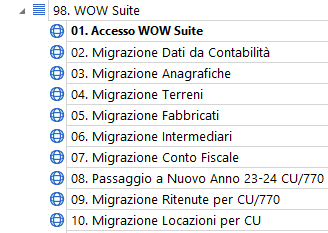 2. Dal menu di Spinoff Contabilità, punto 98. Wow Suite > 01. Accesso Wow Suite ;