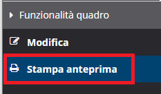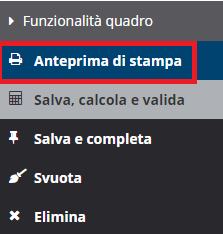 Per visualizzare l'anteprima di stampa di ciascun quadro, dall'interno della CU, cliccare sulla voce "Anteprima" disponibile nella sezione "Funzionalità quadro".