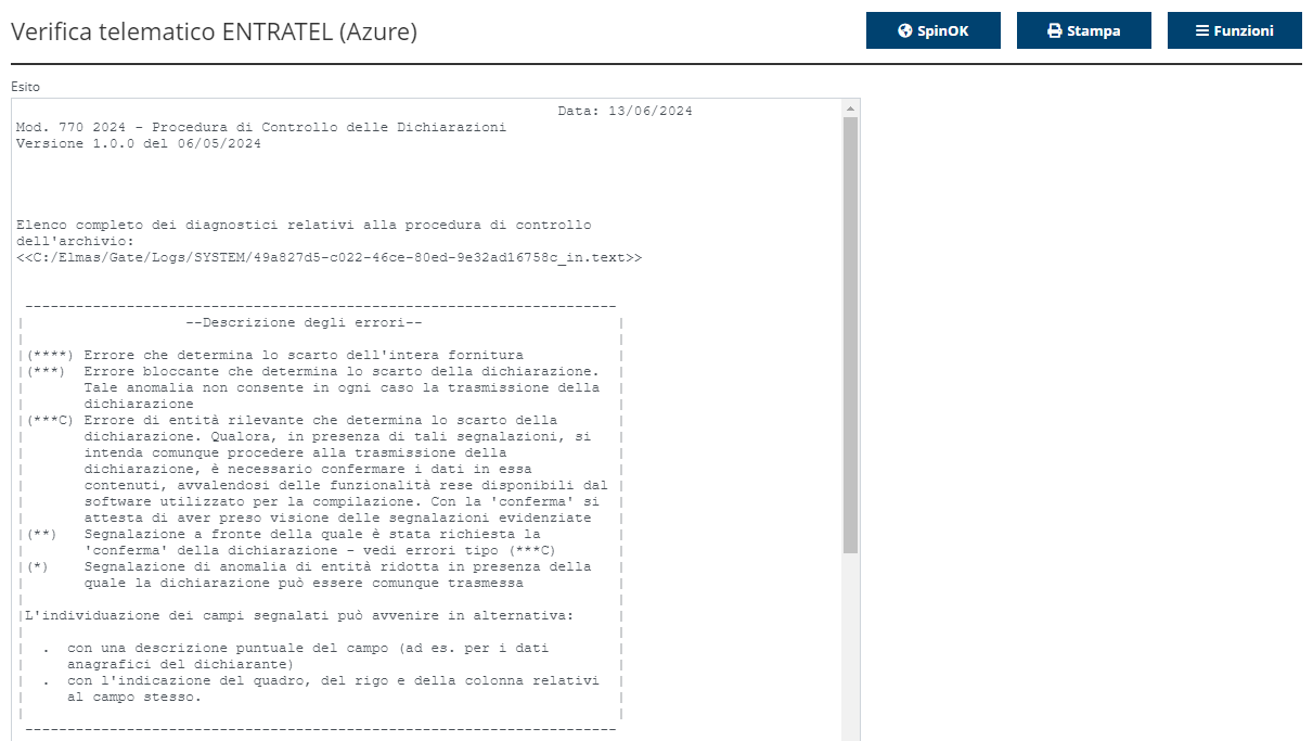 - Invio del 770 senza SpinOk;