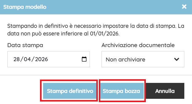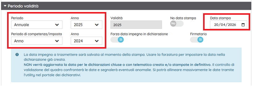 Nella sezione sottostante, proseguire inserendo il periodo di riferimento e la data stampa.