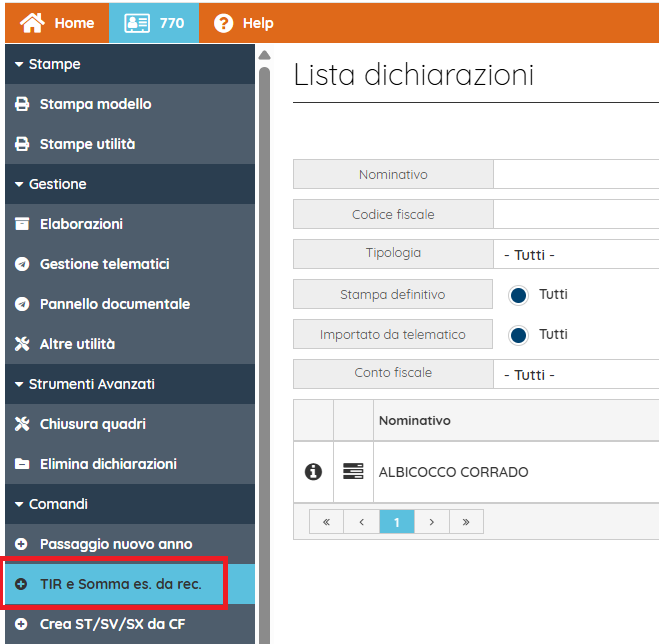 - Allineamento intermediari: permette di associare massivamente l'intermediario corretto a tutti i 770;