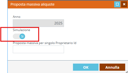 Da notare che è possibile effettuare la proposta anche per singola anagrafica, basta inserire ID anagrafica del singolo proprietario nel campo "Proposta massiva per singolo Proprietario Id".